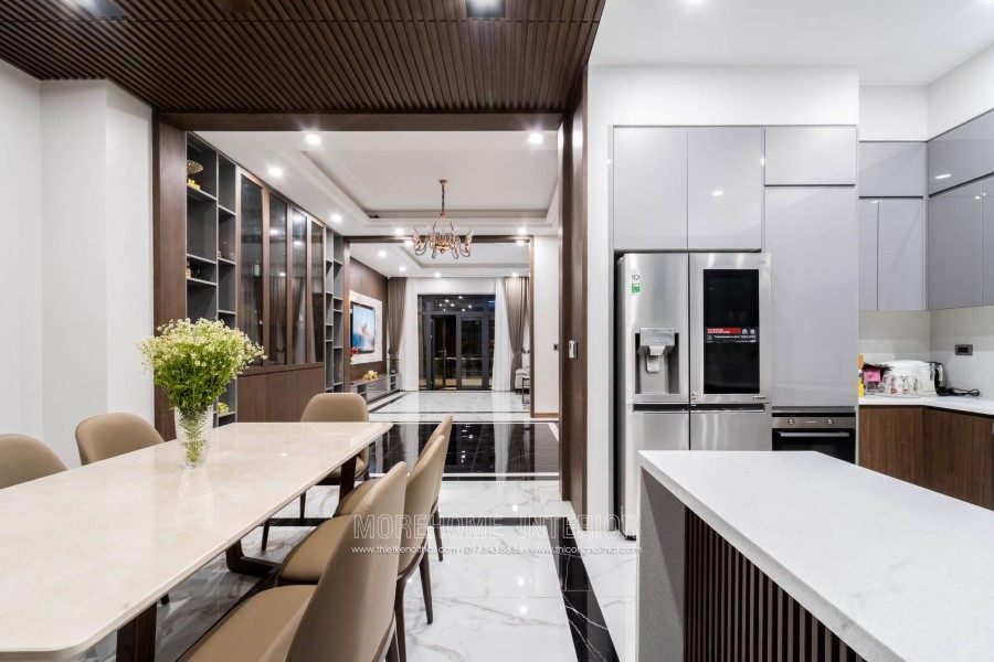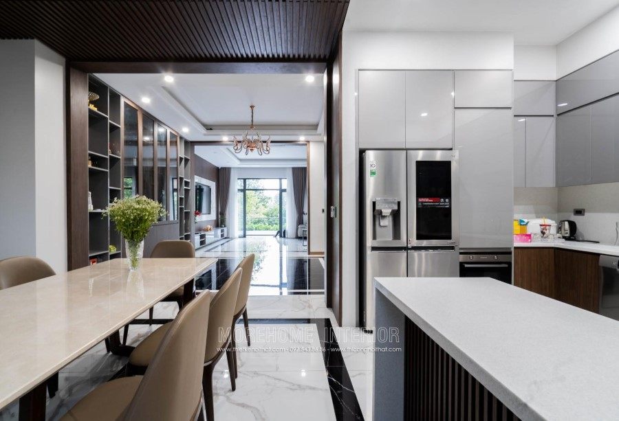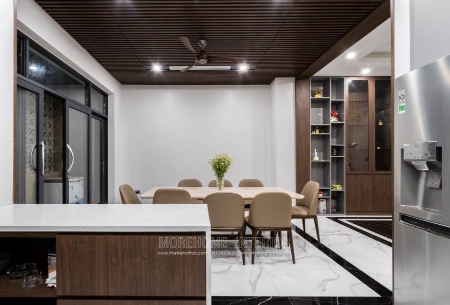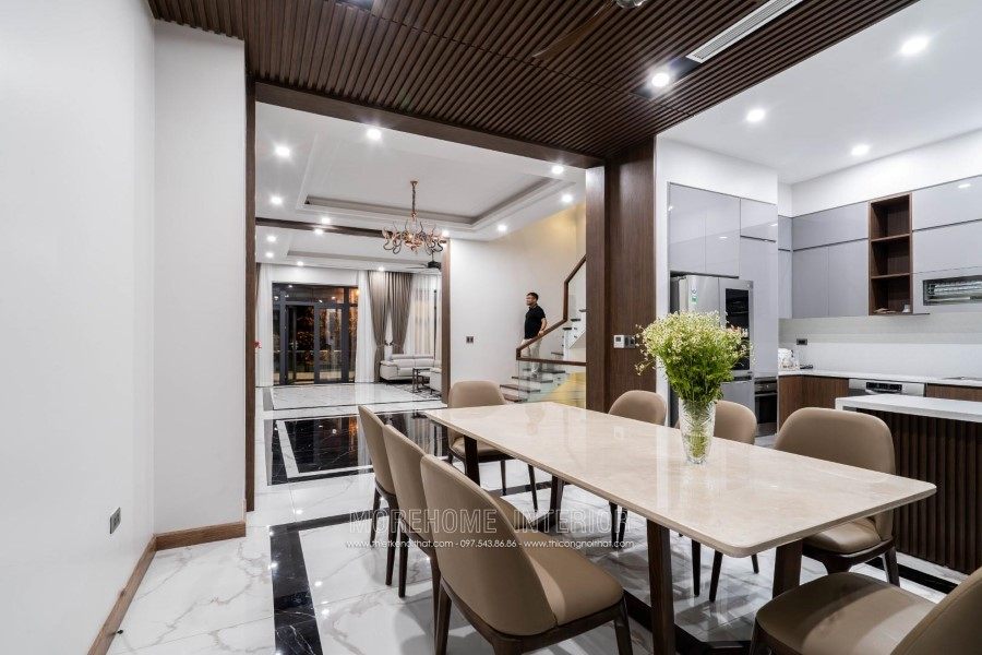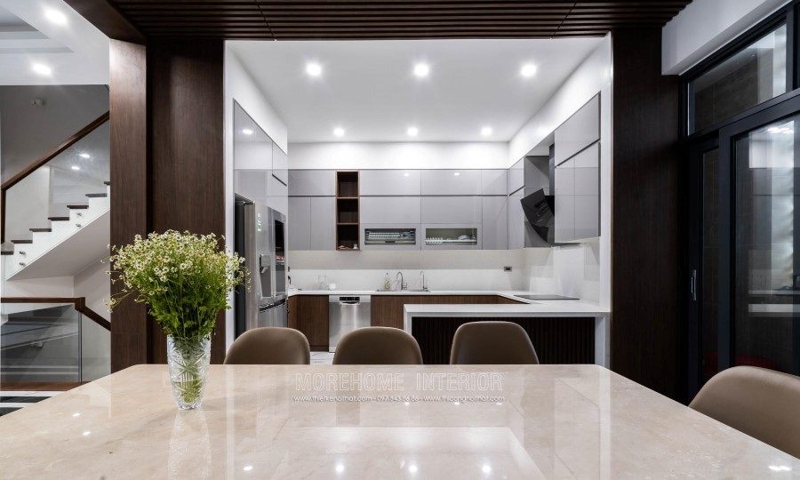 This is one of the villas that Morehome designed and built exclusively in Vinh. This Villa is designed starting from architecture to interior and after finishing constructing the house looks the same as well as the design, even by the color . The architect of Morehome has transformed a beautiful, luxurious villa from 3D photos to realistic images. At first, you may think that it is all 3D design because how amazing and attractive it looks, but in fact it is the photo that Morehome took when completing and handing over the house. Morehome is always proud to be the unit that designs and constructs the interior of the villa honestly and closely from the color and materials that the 3D drawing is constructed .There will be no drawing one way. but build another way. So why can Morehome achieve that?