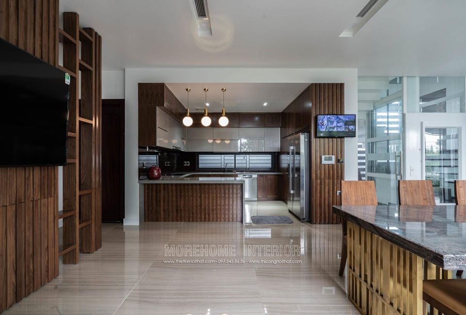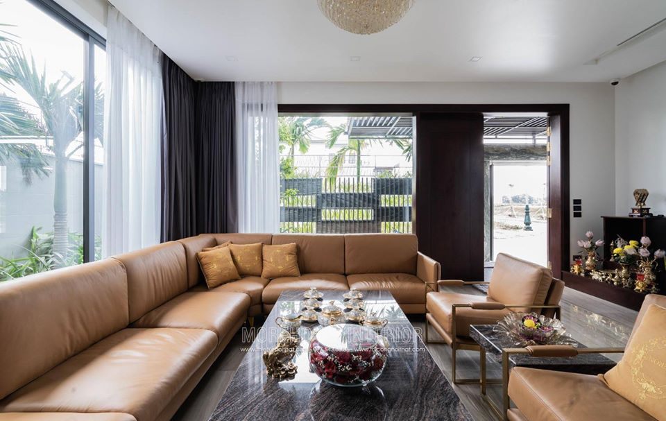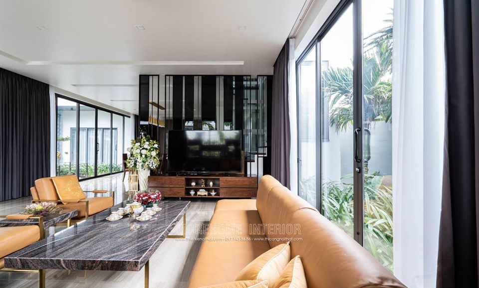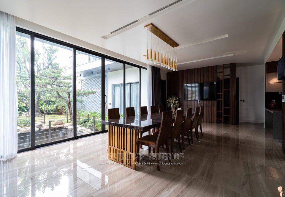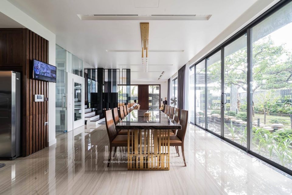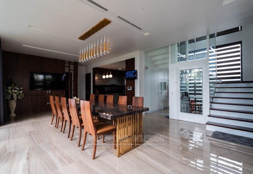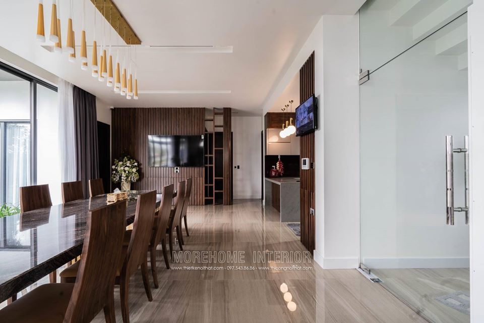 Morehome undertakes the interior construction of a luxury modern villa in Ha Tinh with the layout including 1 living room, 1 dining room, 1 kitchen and 1 bedroom. Join Morehome to analyze in detail each room space with the furniture materials used here!