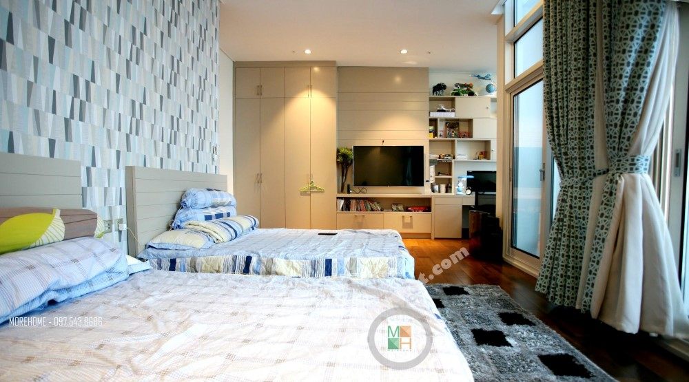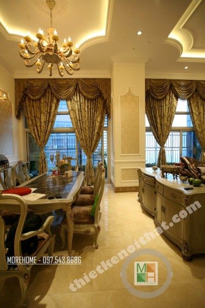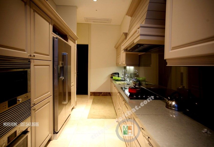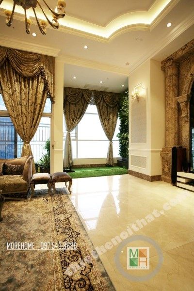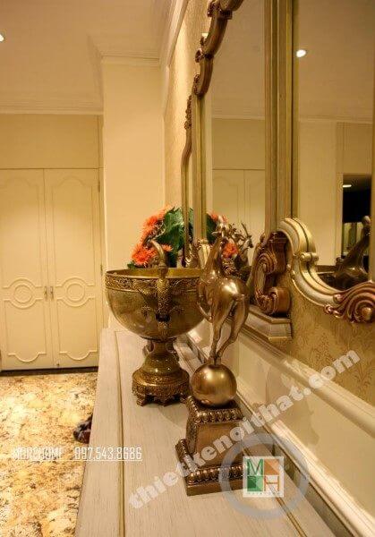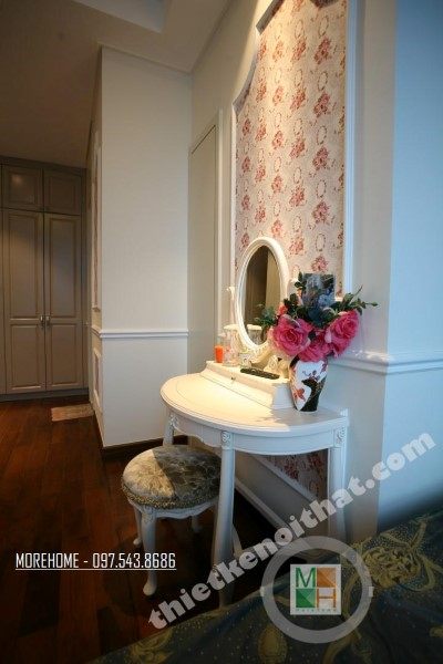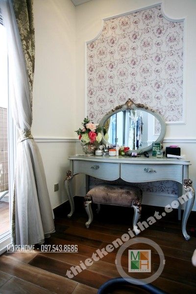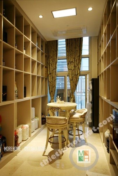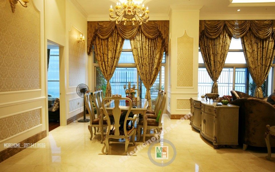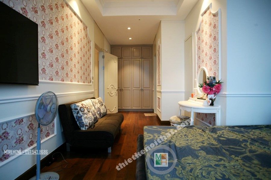 This Penthouse apartment uses light materials mainly to bring wide and airy feeling. The designs using mostly soft golden brown tones evoke the feeling of a classic Europe. One of the favorite design trends in 2016 is also a feature of neoclassical design, floral motifs with subtle curves are used on almost all items that evoke a sense of freshness. , youthful and still exuding the sophistication and meticulousness of neoclassical design. In addition, the green designs are especially focused by the architect when cleverly combining harmoniously, arranging the hanging garden in a reasonable way without wasting space, increasing the aesthetics and bringing freshness, pleasant for the homeowner.