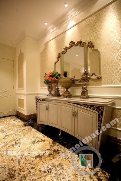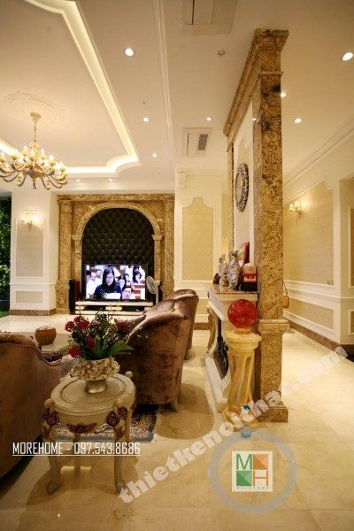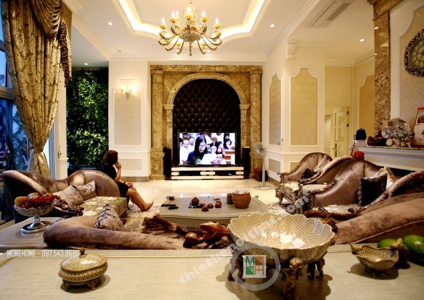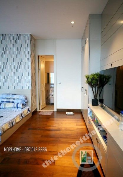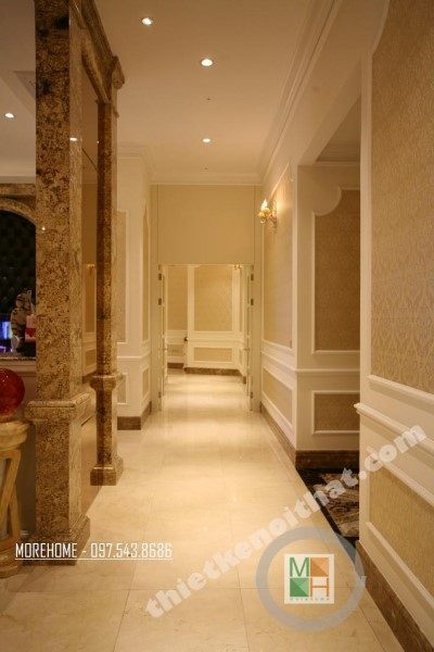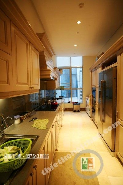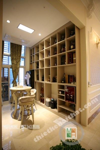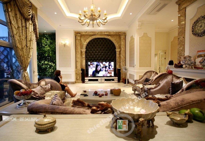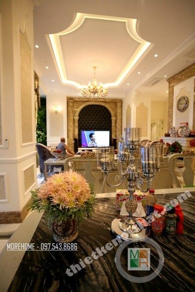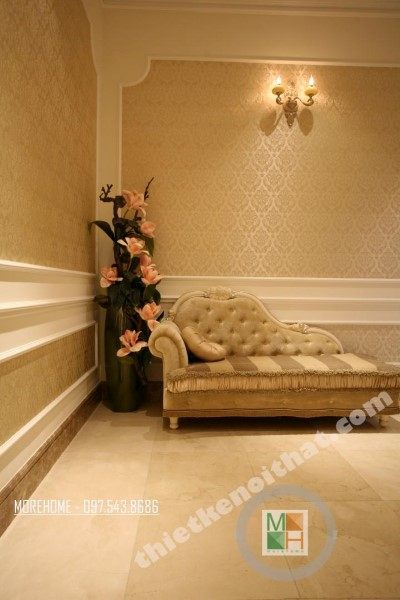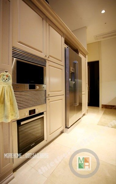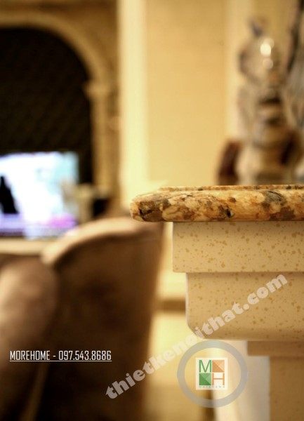 This Penthouse apartment uses light materials mainly to bring wide and airy feeling. The designs using mostly soft golden brown tones evoke the feeling of a classic Europe. One of the favorite design trends in 2016 is also a feature of neoclassical design, floral motifs with subtle curves are used on almost all items that evoke a sense of freshness. , youthful and still exuding the sophistication and meticulousness of neoclassical design. In addition, the green designs are especially focused by the architect when cleverly combining harmoniously, arranging the hanging garden in a reasonable way without wasting space, increasing the aesthetics and bringing freshness, pleasant for the homeowner.
