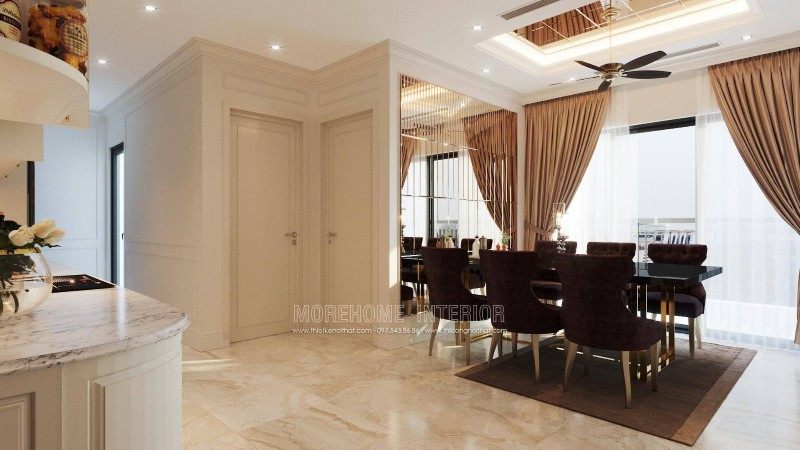 The apartment is built by Tan Hoang Minh Group, so the room space is always neoclassical style of interior design - royal style and therefore the area of the apartment is often larger than the projects of normal apartment.