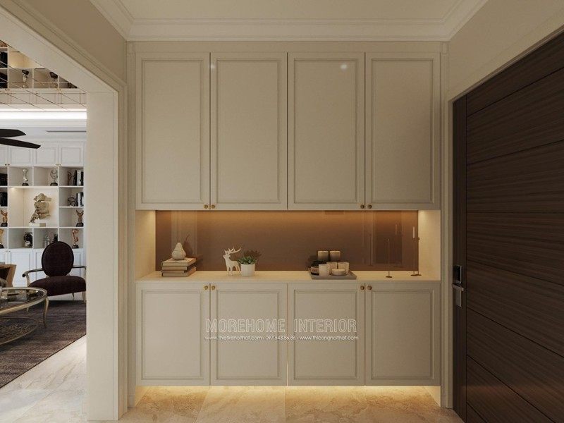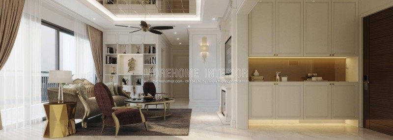 Like a ray of sunshine shining in the dark cloudy sky, the neoclassical D’Capitale apartment interior design shines with the perfect combination of high-end gilded furniture. A chosen color gamut seems to make the home space more murky, but it shines with borders made of gold-plated stainless steel. The neoclassical style D’capitale apartment's interior design always brings dazzling beauty and class to the apartment.