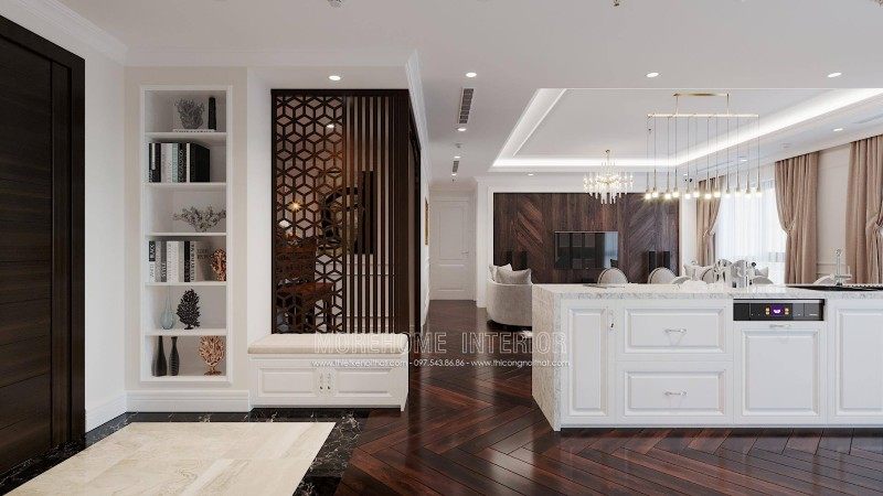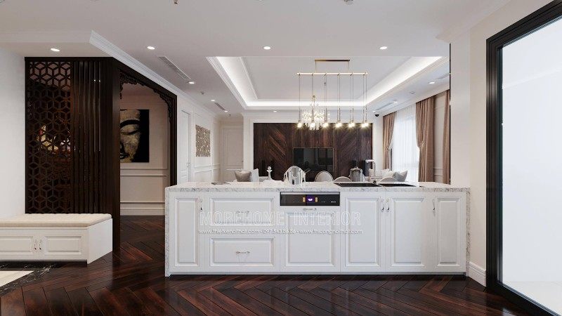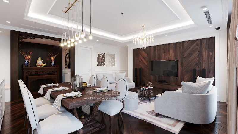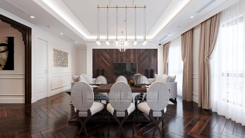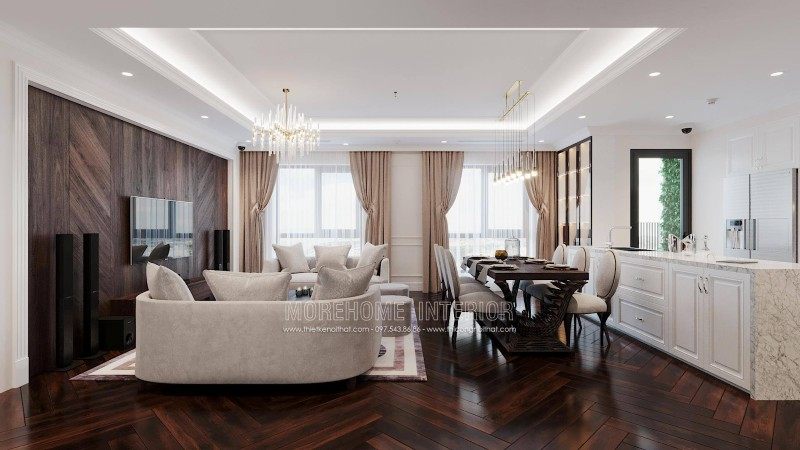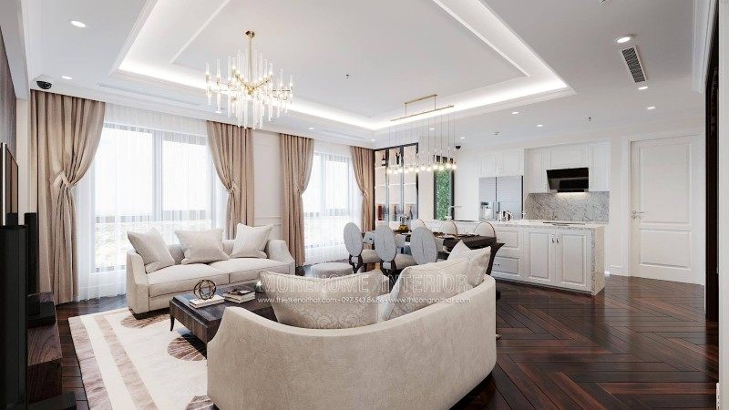 The neoclassical style of furniture has the common feature of being exquisitely engraved with curving lines to bring an extremely classy and impressive interior for anyone. every time you set foot here. Let's join the designers of Morehome to admire these beautiful designs through the interior design of Emerald My Dinh apartment building!