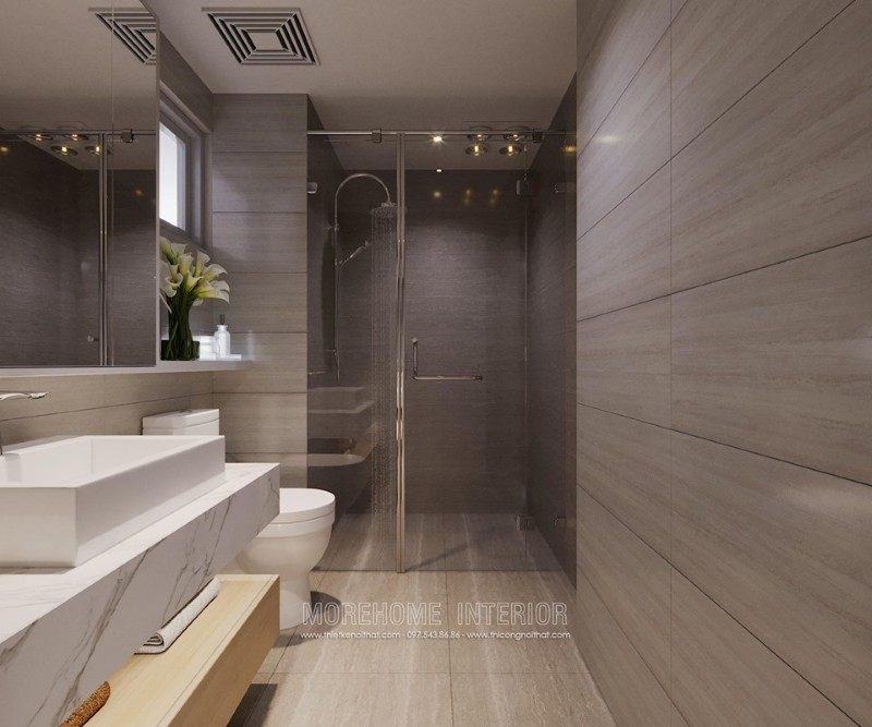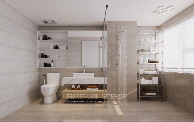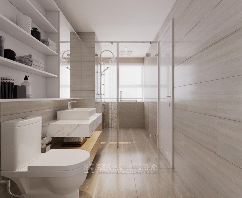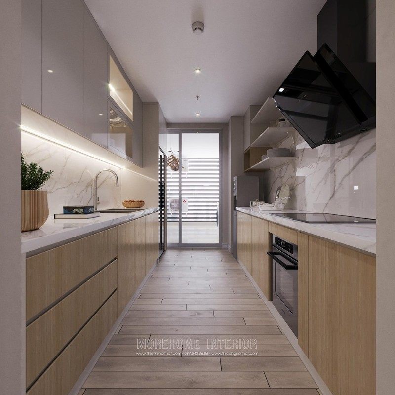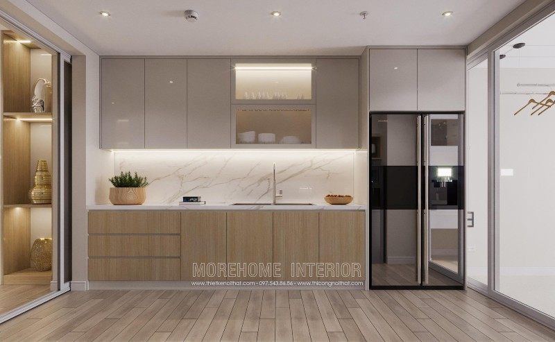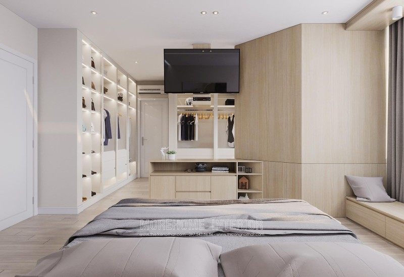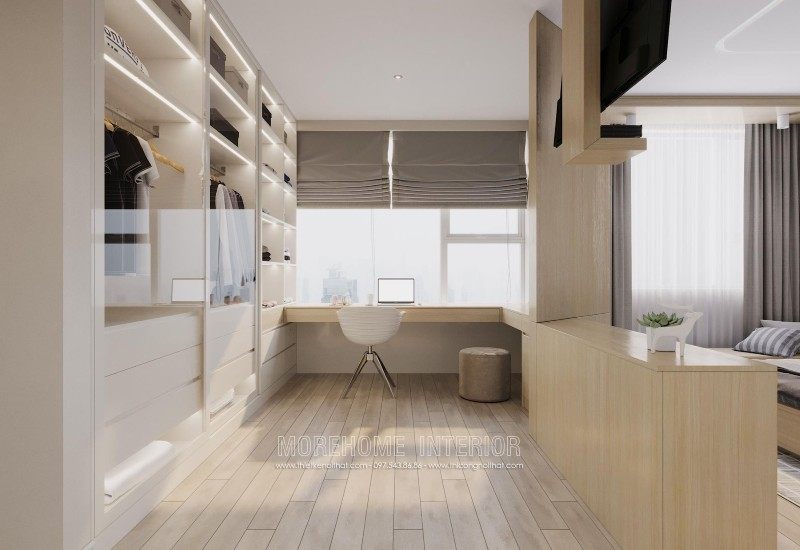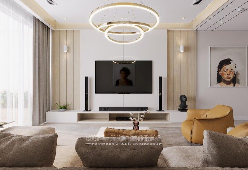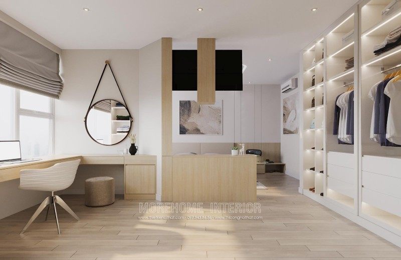 Modern interior design of Mandarin Garden apartment with milky white colors. Coming to this design, you will get a simple, beautiful and modern apartment space. This design is designed mostly with industrial materials such as industrial wood, fabric sofa, decorative lights, ..