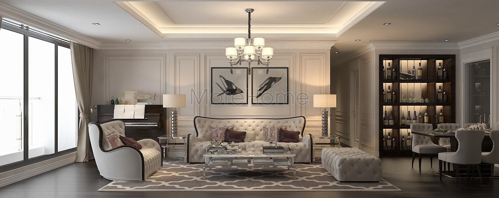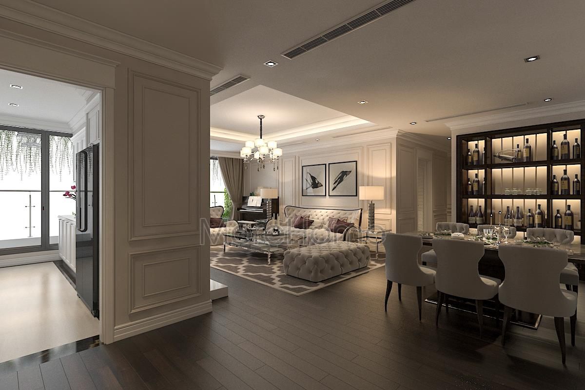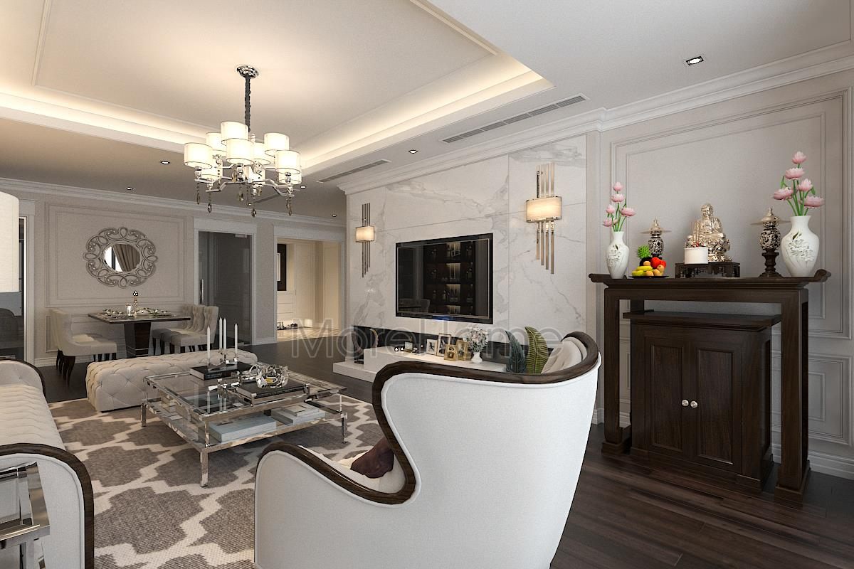 The interior of TSQ luxury apartment building at Mr. Kien's house is designed in a gentle neoclassical style with typical highlights. This TSQ apartment design is considered a beautiful design with exquisite, neat design lines and the most scientific arrangement.