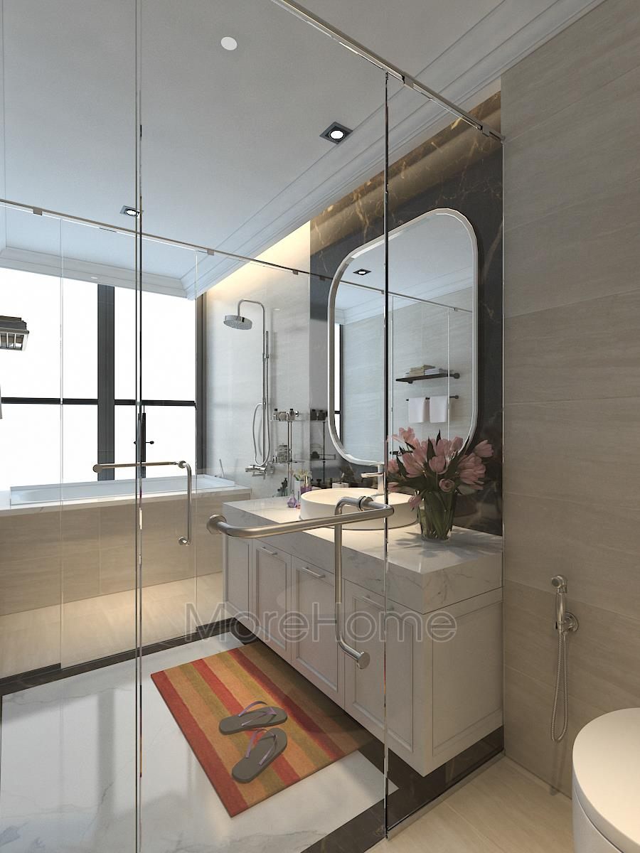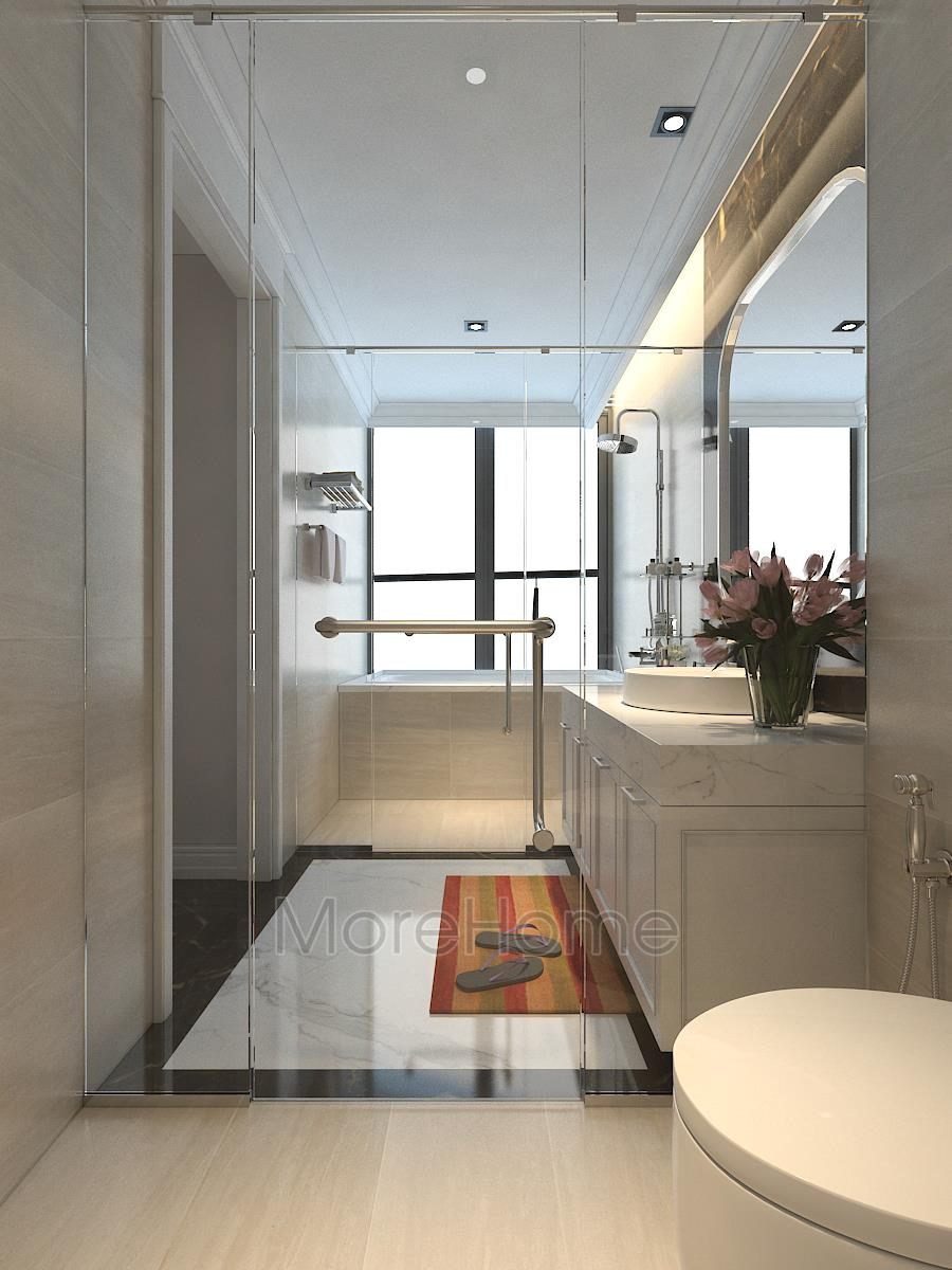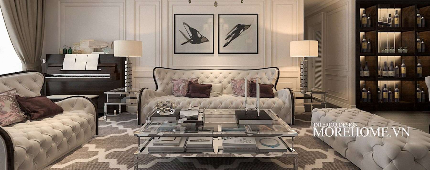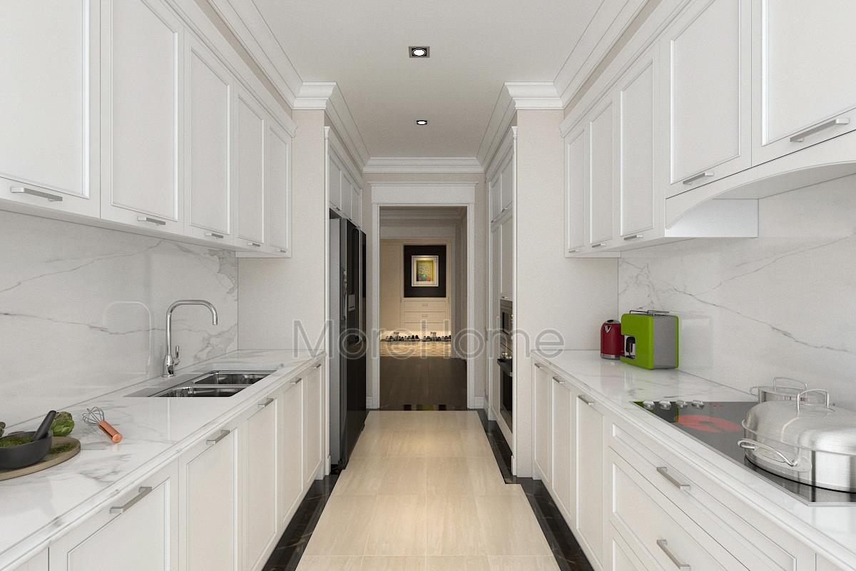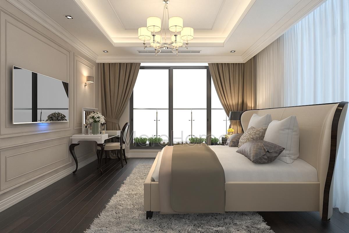 The living room of TSQ high-class apartment TSQ Kien's house is beautifully designed with a luxurious neoclassical sofa with high quality feeling. The couch sofa is at the heart of TSQ's living room interior, symmetrically on both sides is a sofa with soft, seductive curves and a relaxing accent sofa that offers high usability. Décor glass tea table is adorned with a noble decorative lamp. With this beautiful light and decorative details, it contributes to the self-beauty of all interior products.