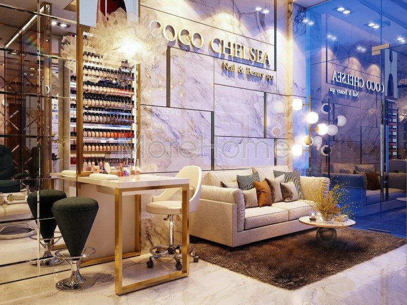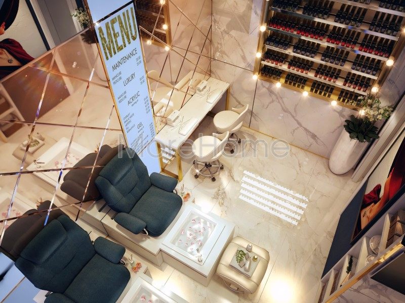 The modern design of the nail salon's interior has many different characteristics compared with the interior designs of outstanding villas or common apartments. In conventional housing designs, architects have more space to unleash creativity, but with a rather small shop space, requirements are required to ensure both functionality and attraction, creating an impression. The strong and attractive statue gives customers and employees the most comfortable space.