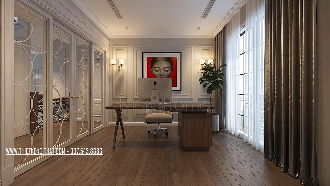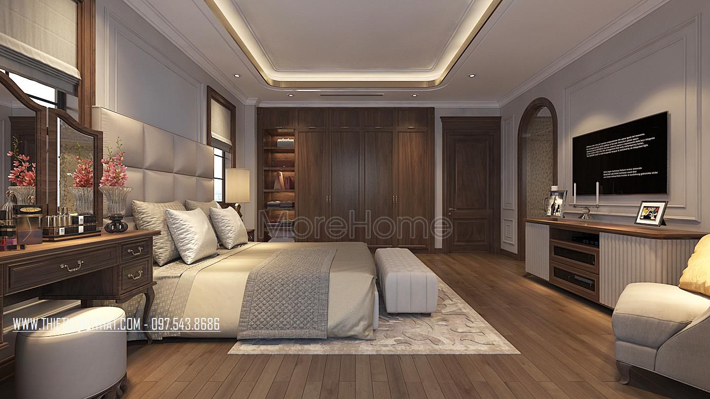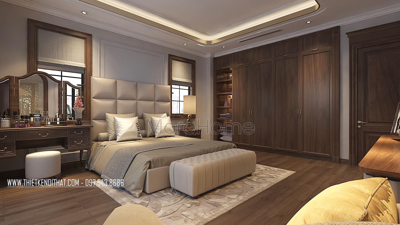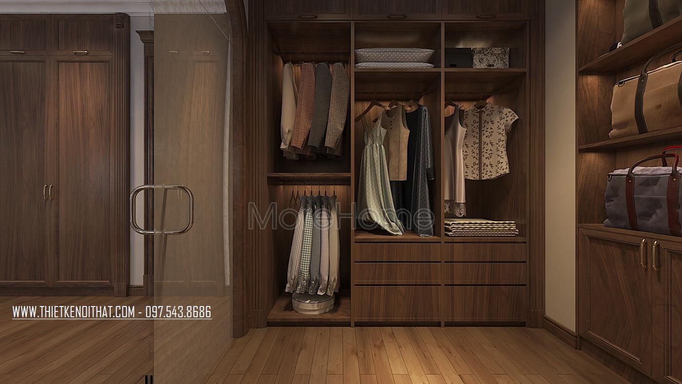 Interior design of this Villa at Vinhomes Riverside use mainly the high-end Walnut wood which delivers to the owner wonderful home
