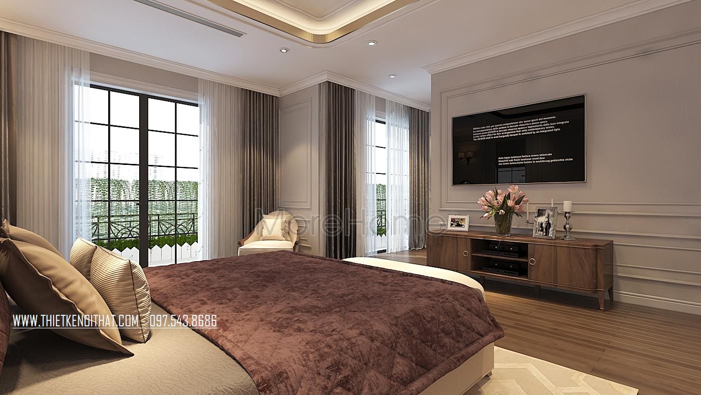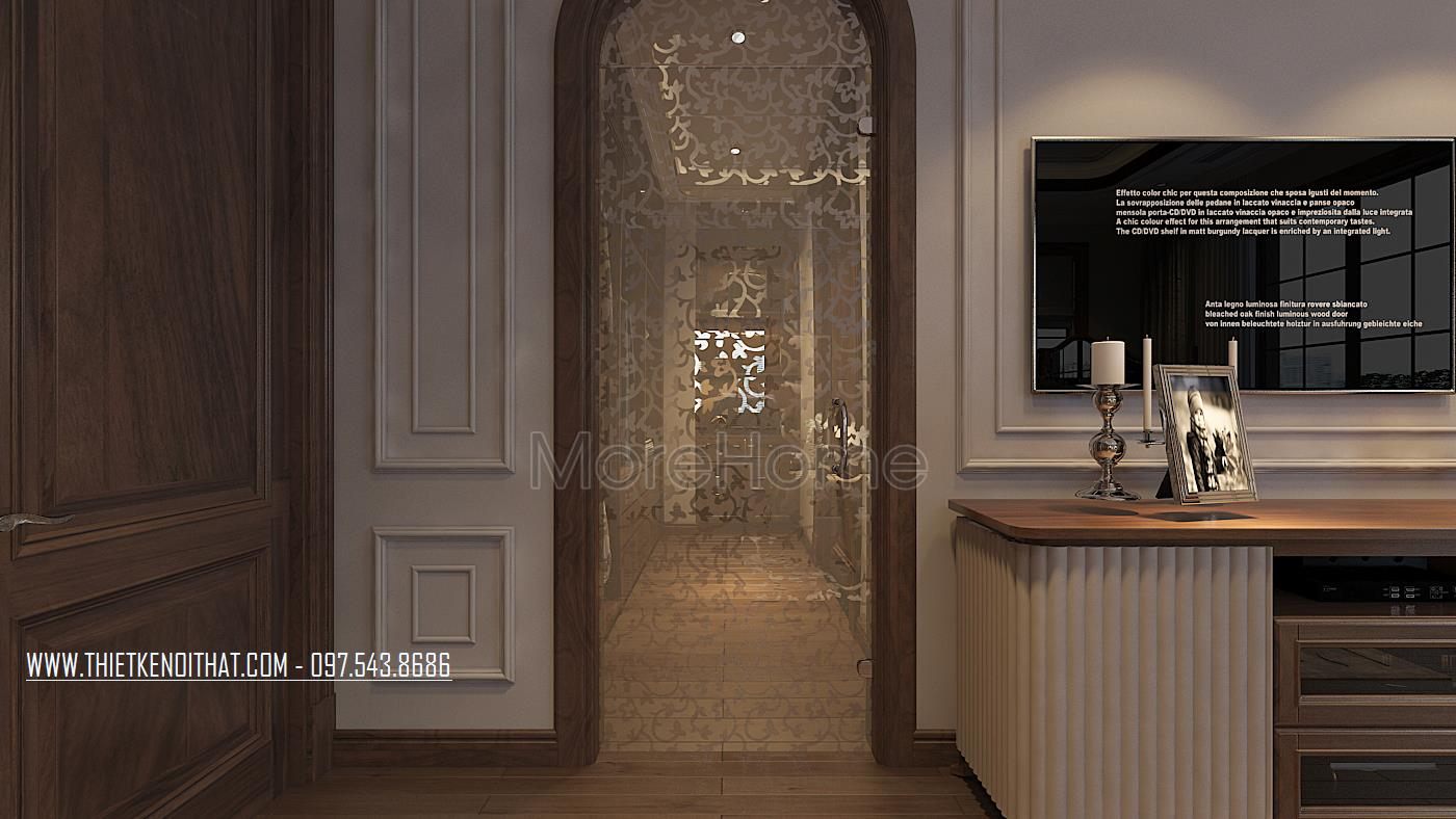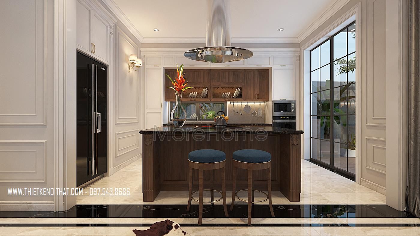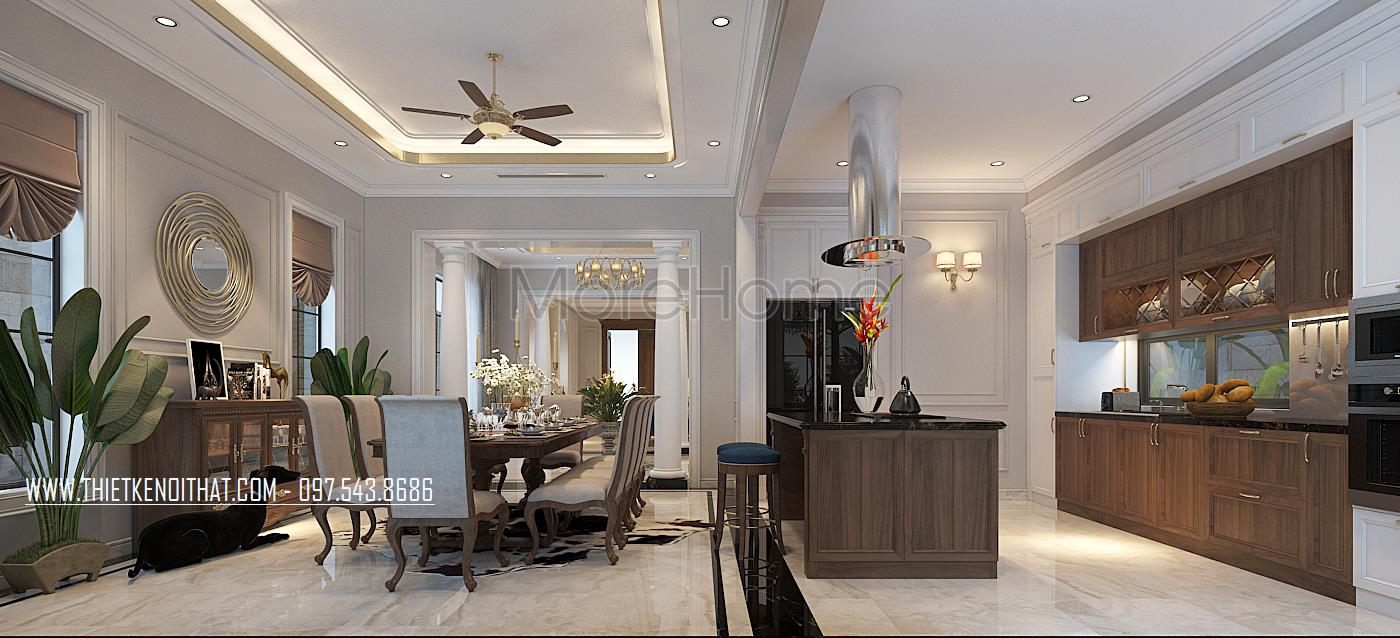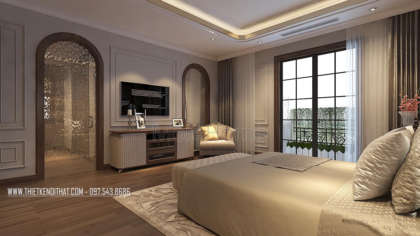 Interior design of this Villa at Vinhomes Riverside use mainly the high-end Walnut wood which delivers to the owner wonderful home