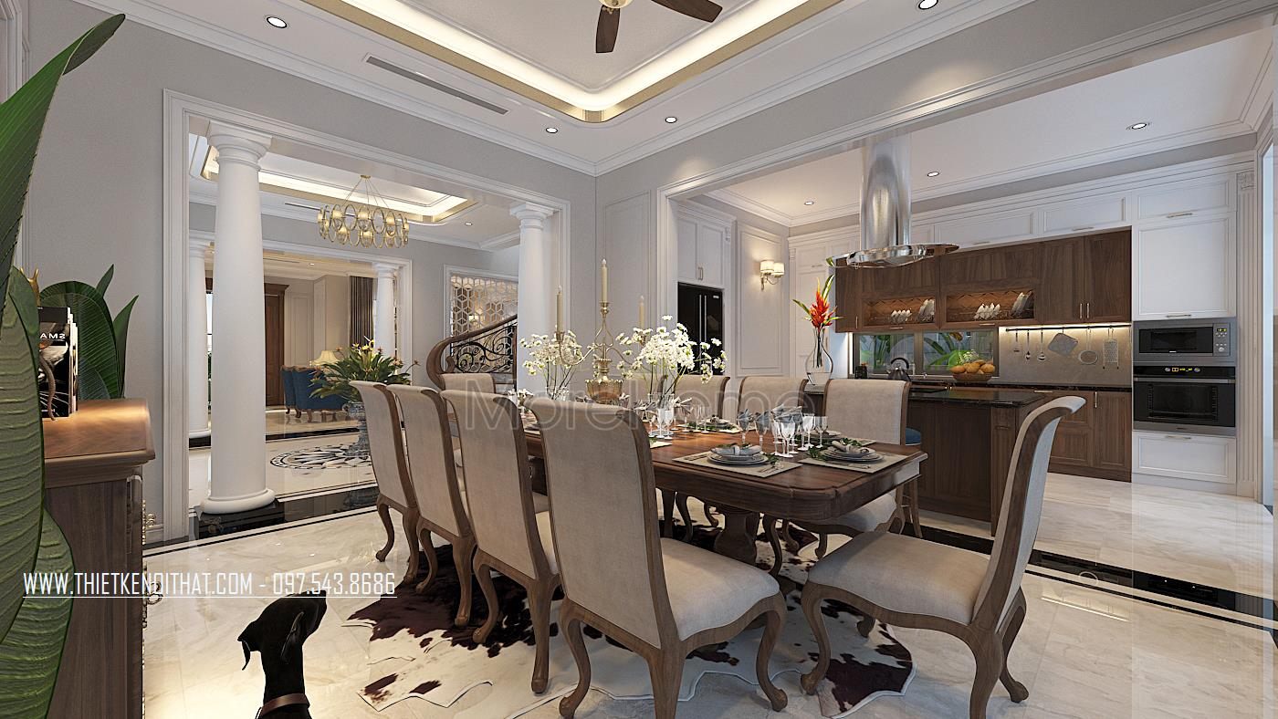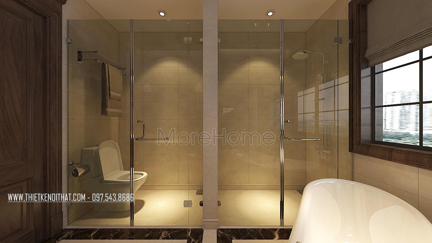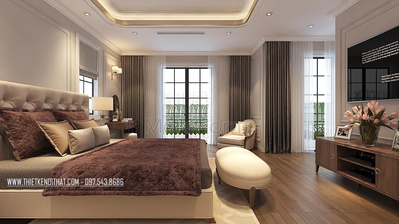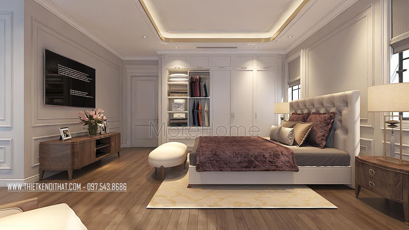 Interior design of this Villa at Vinhomes Riverside use mainly the high-end Walnut wood which delivers to the owner wonderful home