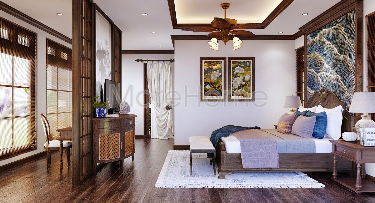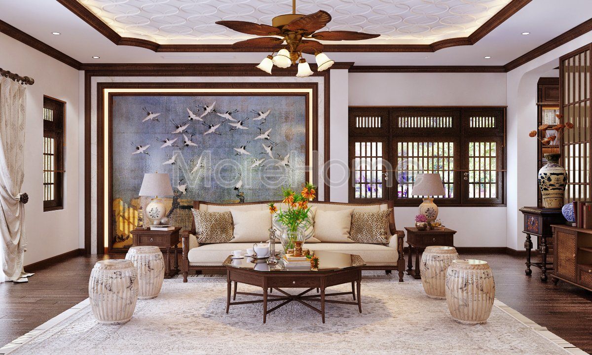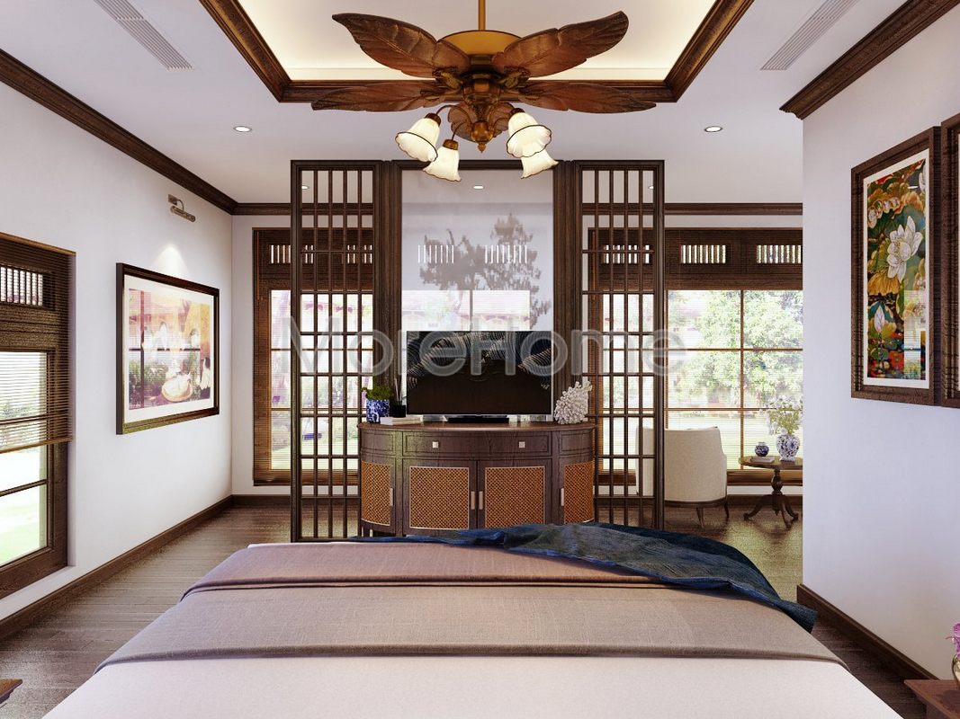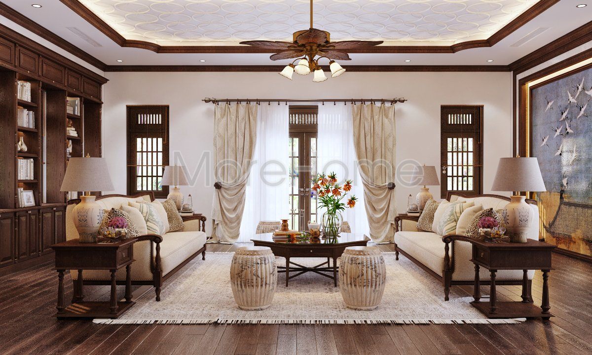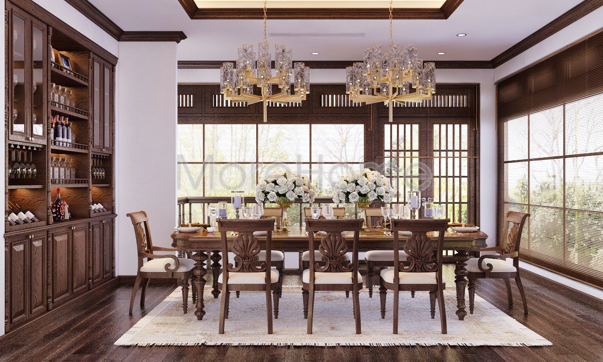 Admiring the villa's interior design, whose beauty is a mix of Vietnamese tradition and French classical, the architect has used the warm colors of the tropical wood of Vietnam. The floor area of this villa is really large, so the architect has a way to handle the large space reasonably.