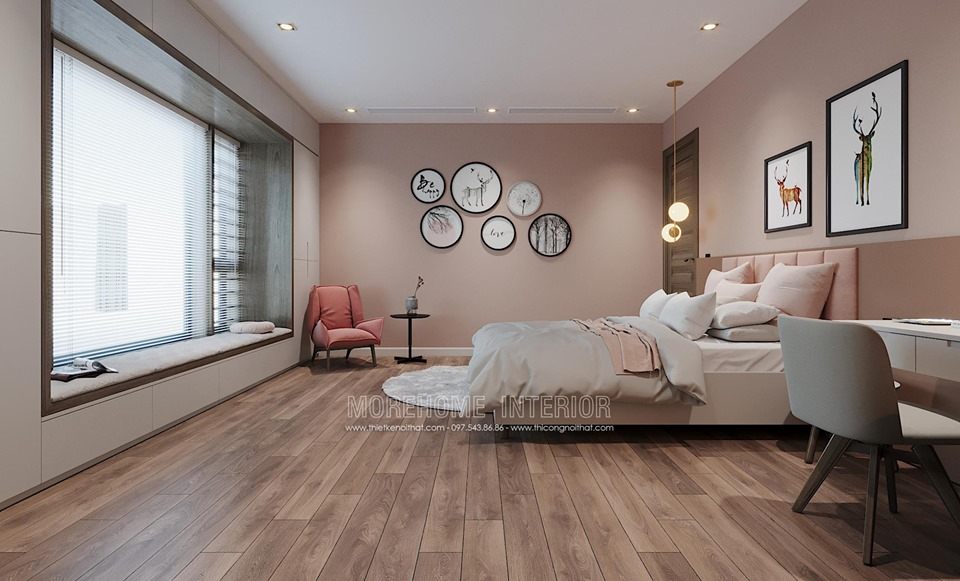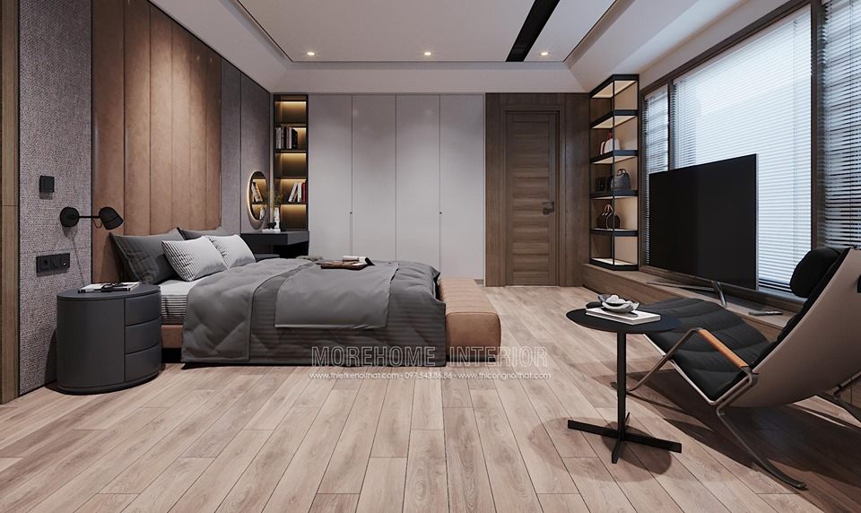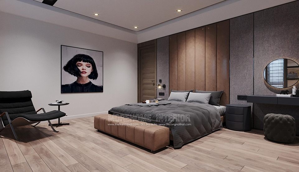 High-class bedrooms are designed with high-end furniture models such as sofa beds, relaxing chairs, TV shelves and high-grade iron decorative shelves. Unique fancy vanity with modern led chair and round mirror. The bedroom is designed with Japanese style, colors are all colors of wood and most of them are covered with wood to ensure safety when using.