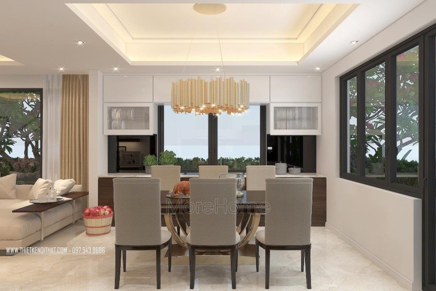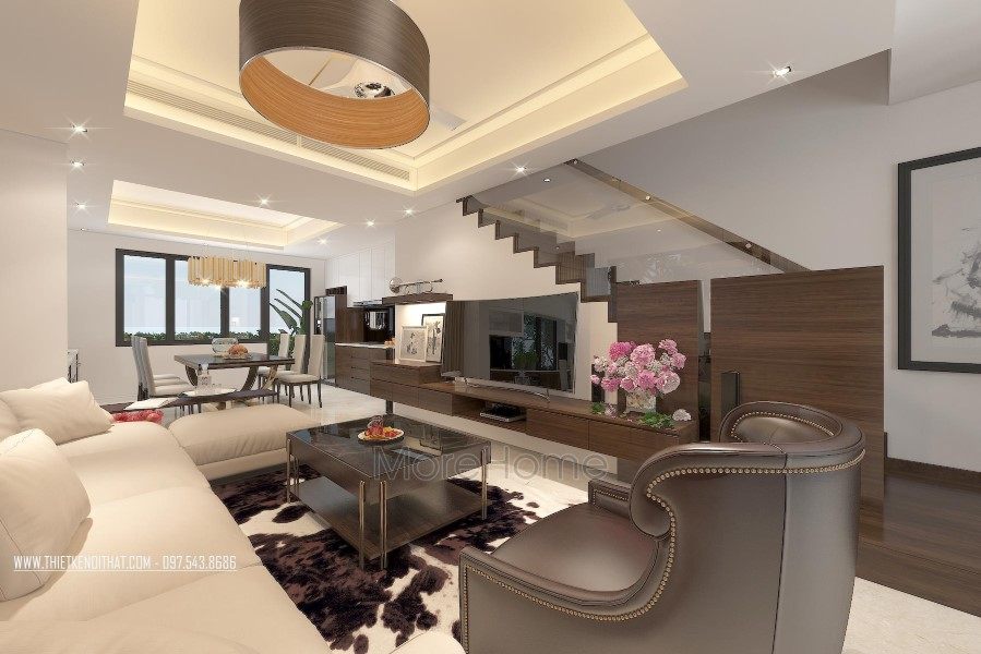 Modern villa interior design or "contemporary" style design is one of the most popular trends in recent years. Specifically, it is a style derived from the concept of modern life without being too affected by the past and the future. This modern style has a bit of a "less is more" viewpoint, all of these factors that cause clutter are avoided, the elements that make a feeling of neutral, clean and delicate. The shapes or colors that this design uses are mostly simple shapes with neutral colors to limit and overcome unnecessary annoyances.